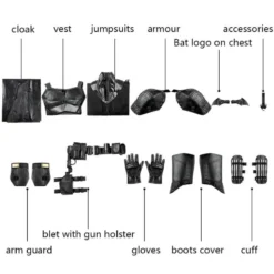 | Full Set Including | Vests, Jumpsuit, Armors, Gloves, Decorative Pendant, Arm Guards, Bracer, Accessories, Belts+Holster, Bat Logo, Boots Cover |